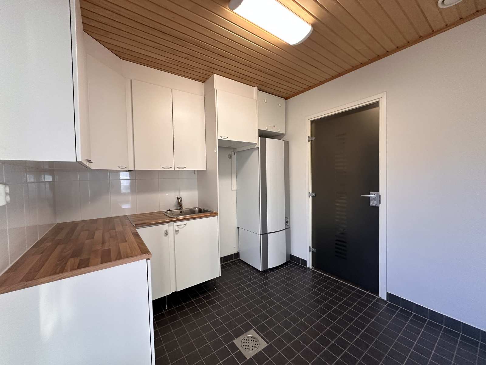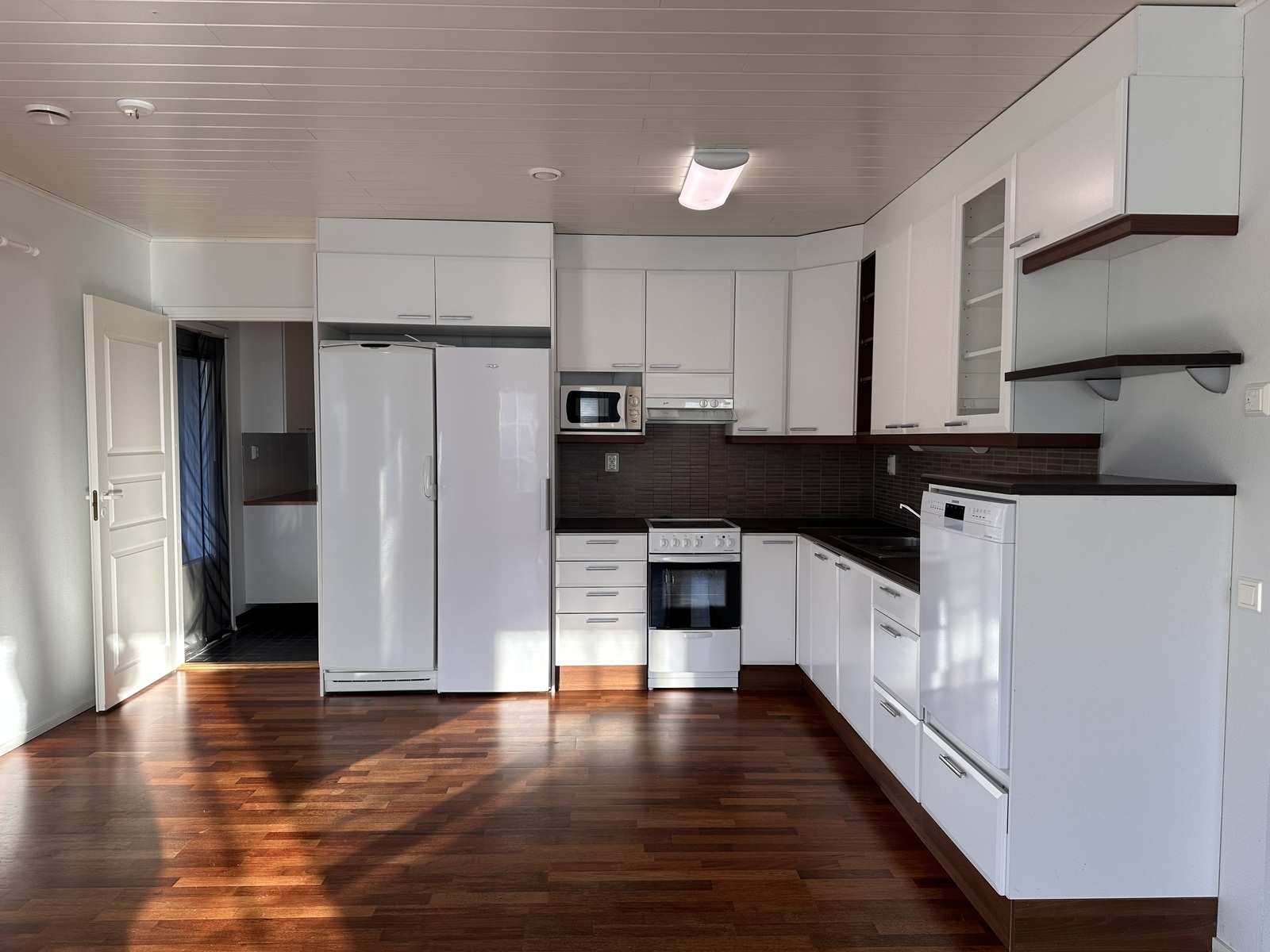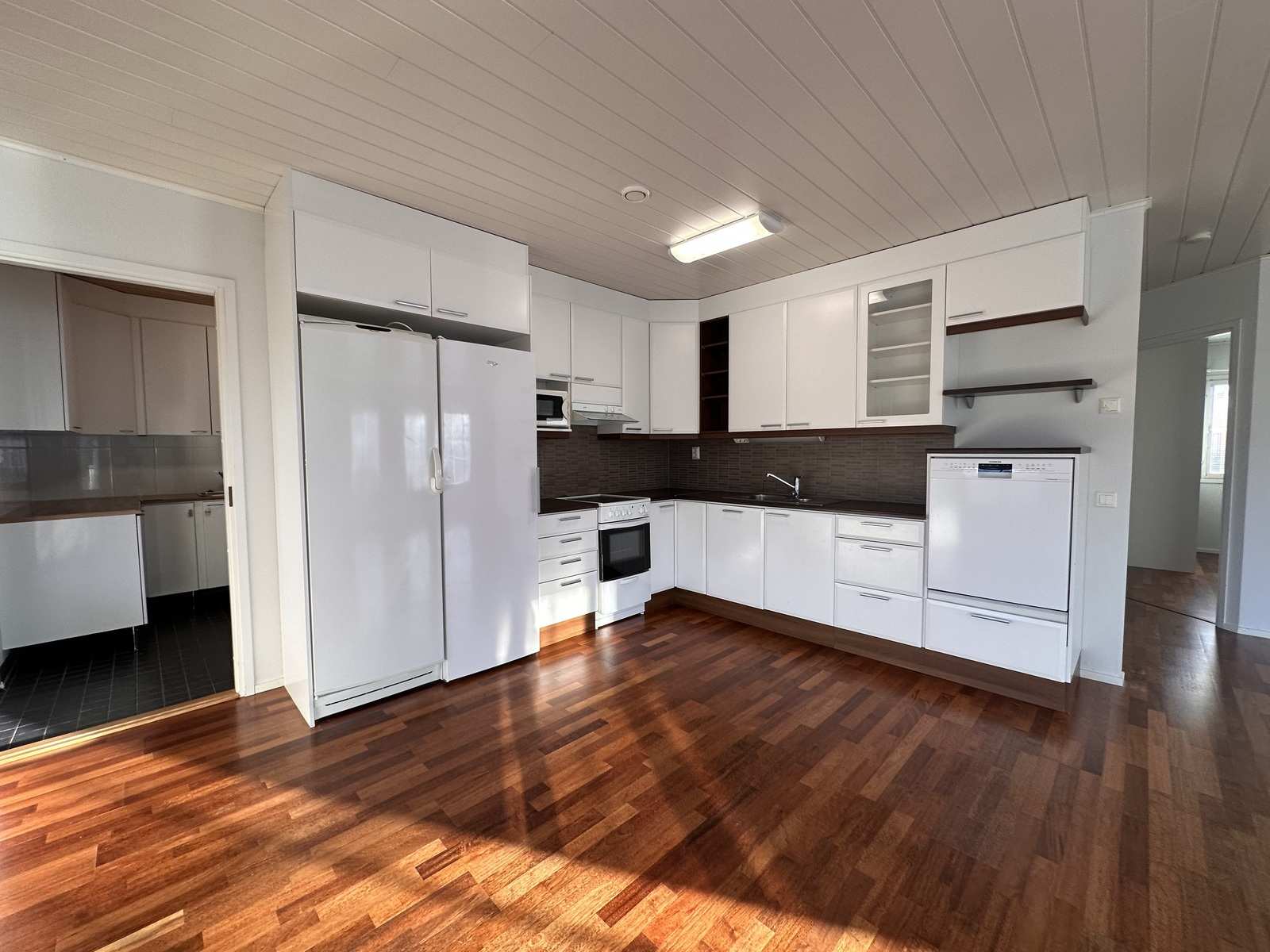 | Keittiön varustus | Jääkaappi ja pakastin: jääkaappi, pakastin Tasot: laminaatti Seinät: maalattu Lattia: laminaatti Muut varusteet: liesituuletin, astianpesukone Liesi/uuni: muu |