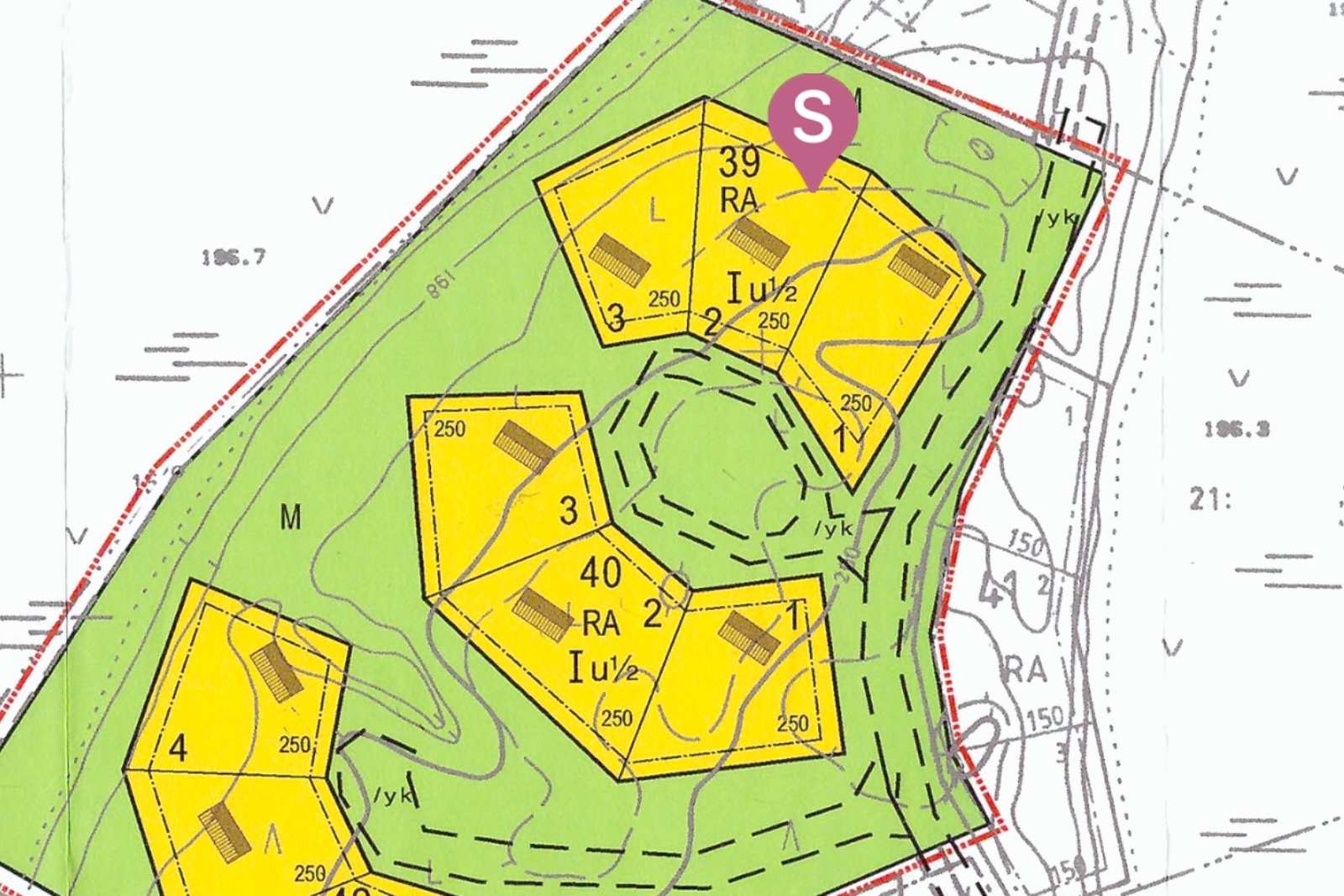 | Lisätietoja kaavoituksesta | Ahvenjärven ranta-asemakaavan muutos. Ylläksen osayleiskaava (Kittilän kunta). RA-alueella rakennuspaikalle saa rakentaa yhden loma-asunnon. Asuinrakennuksen lisäksi rakennuspaikalle saa rakentaa erillisen saunarakennuksen ja erillisen katoksen tai varastorakennuksen. Varastorakennuksen tai katoksen ala saa olla enintään 30 % rakennusalalla toteutettavasta kerrosalaneliömetrimäärästa. Rakennusten on muodostettava kortteleittain tai kaavatiesivuittain yhtenäisia ryhmiä, joissa on sama ulkoseinän päämateriaali ja värisävy. Rakennusten ulkoseinien on oltava puuta tai puuta ja luonnonkiveä ja katteena bitumihuopaa, värillistä peltiä, kiviaineista levyä ja puuta tai turvetta. Kattokaltevuuden on oltava välillä 1:2,5 - 1:1,5. Rakennusten kattokaltevuuksien sekä katon muodon on oltava kortteleittain yhtenäinen. Rakennus on perustettava maaston mukaisesti. Pengerryksia tai leikkauksia ei sallita. Rakennukset, pihatiet ja autopaikat on rakennettava siten, että mahdollisimman vähän rikotaan maanpintaa, muutetaan sen tasoa tai kaadetaan puustoa. Rakennuspaikan rakentamattomat osat on säilytettava luonnontilaisina. Rakennus on sijoitettava vähintään neljän metrin päähän rakennuspaikan rajasta. Vesihuoltolaitoksen toiminta-alueella kaikki jätevedet on johdettava viemäriverkostoon. Autopaikkoja on sijoitettava rakennuspaikalle 1 kpl / 50 kerrosala-m2 RA-alueilla. |