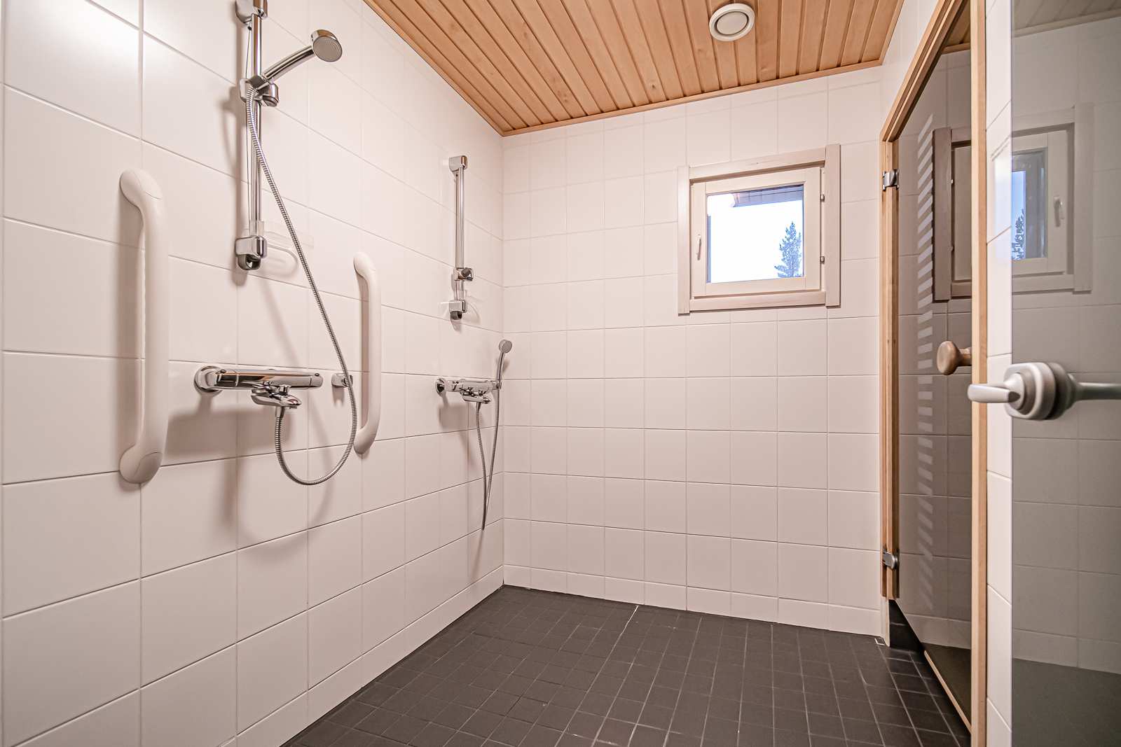 | Saunan pinnat | Seinät: puu Lattia: laatta |