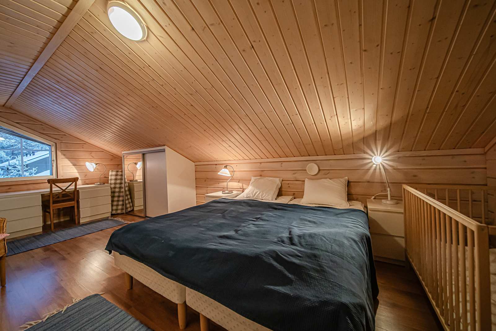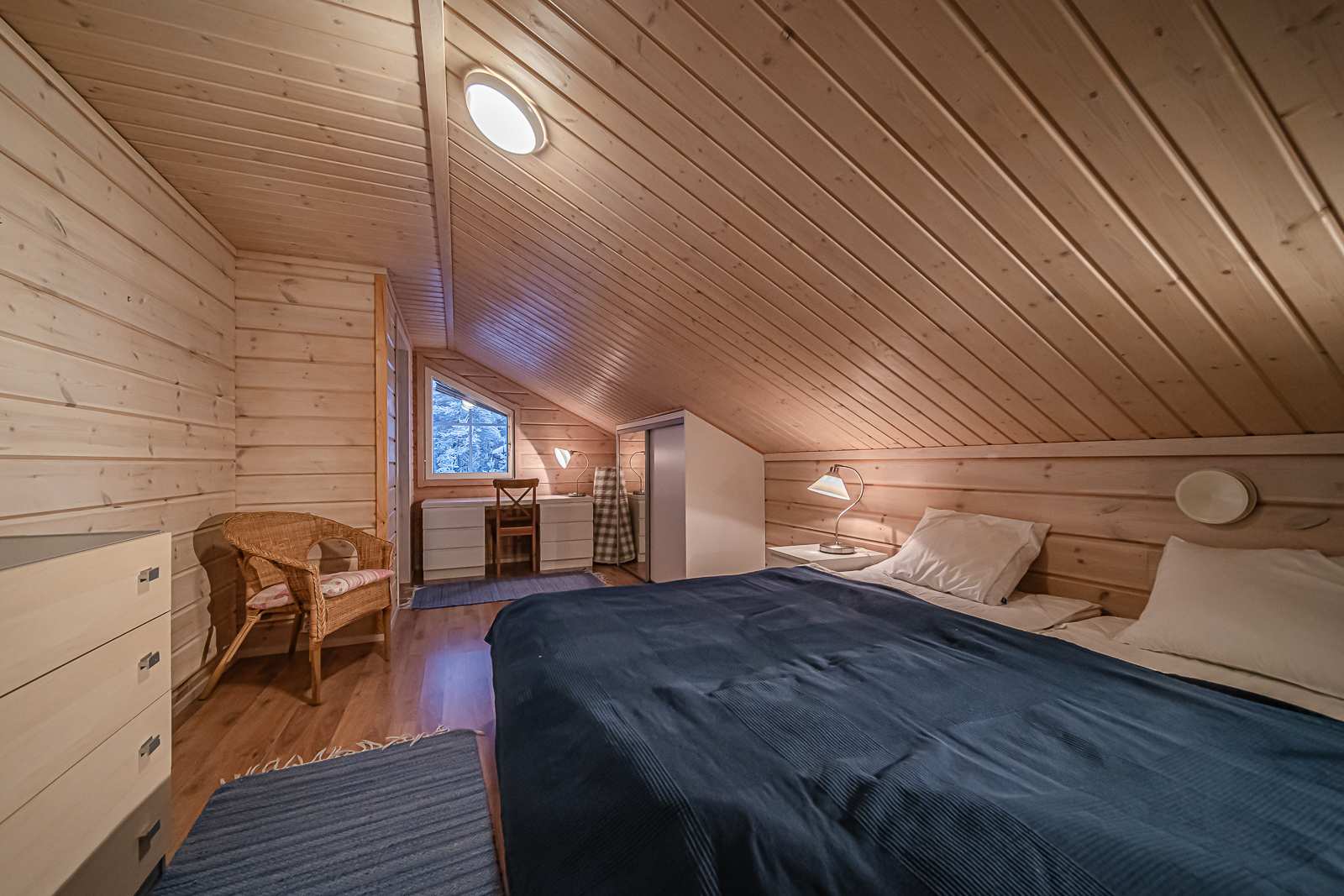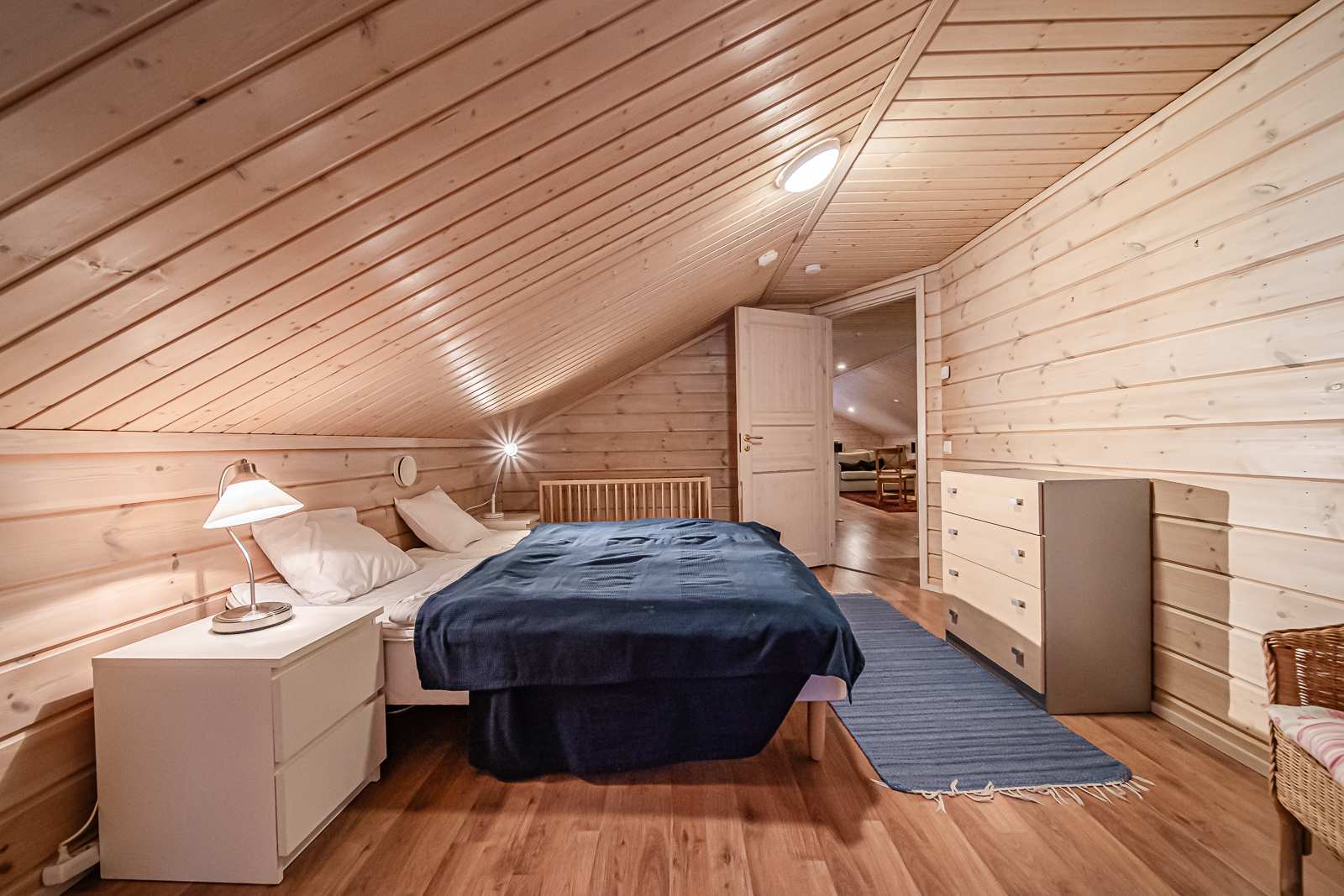 | Makuuhuone | Seinät: puu Lattia: laminaatti |