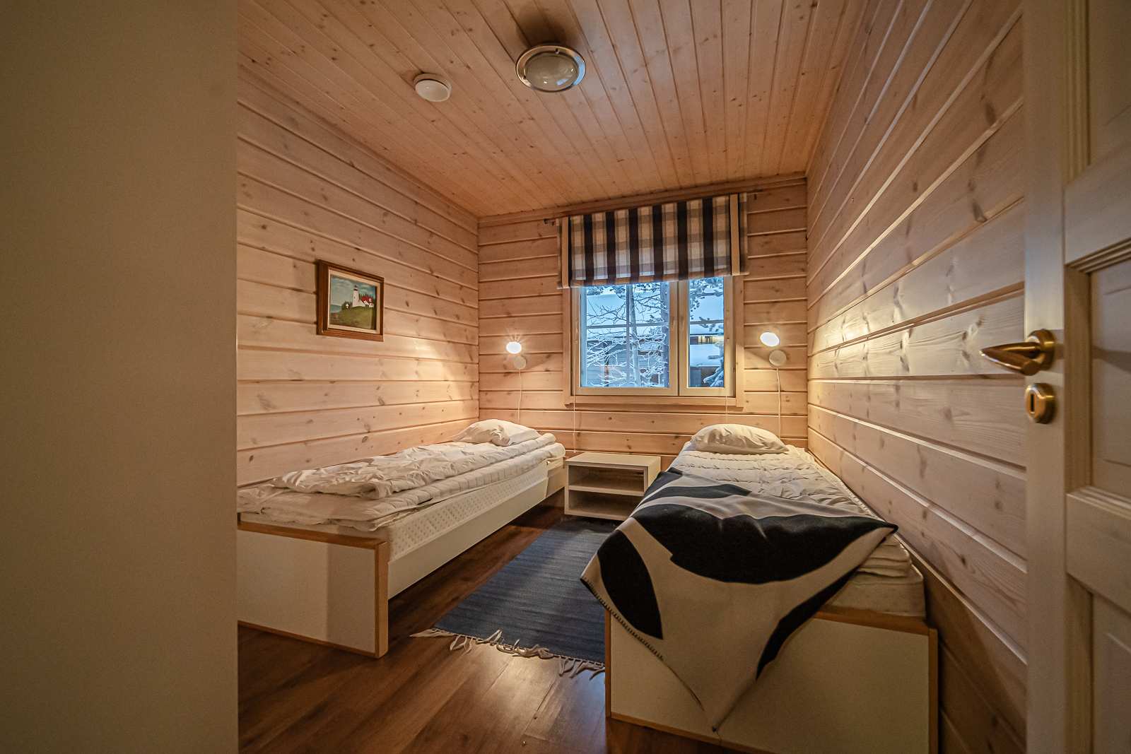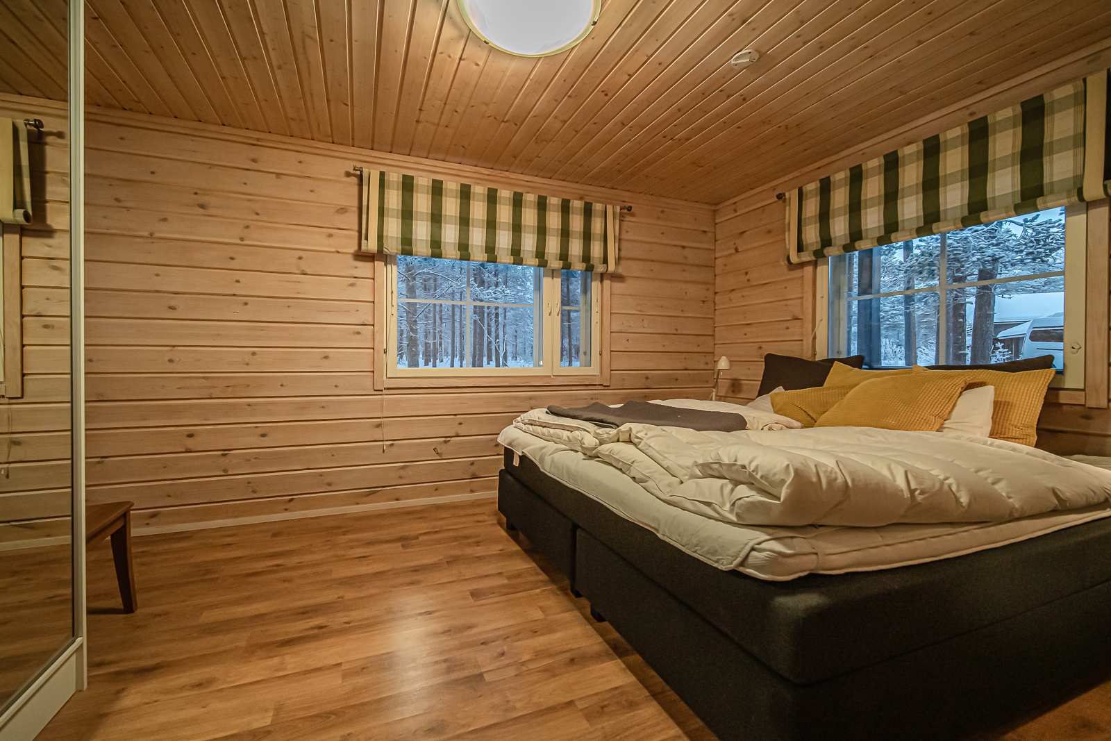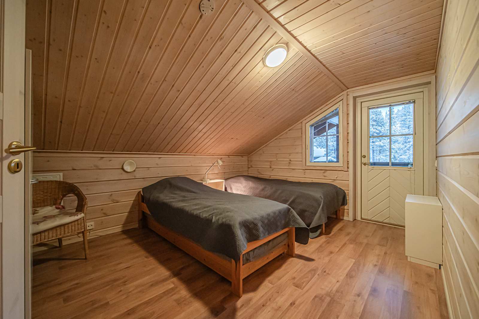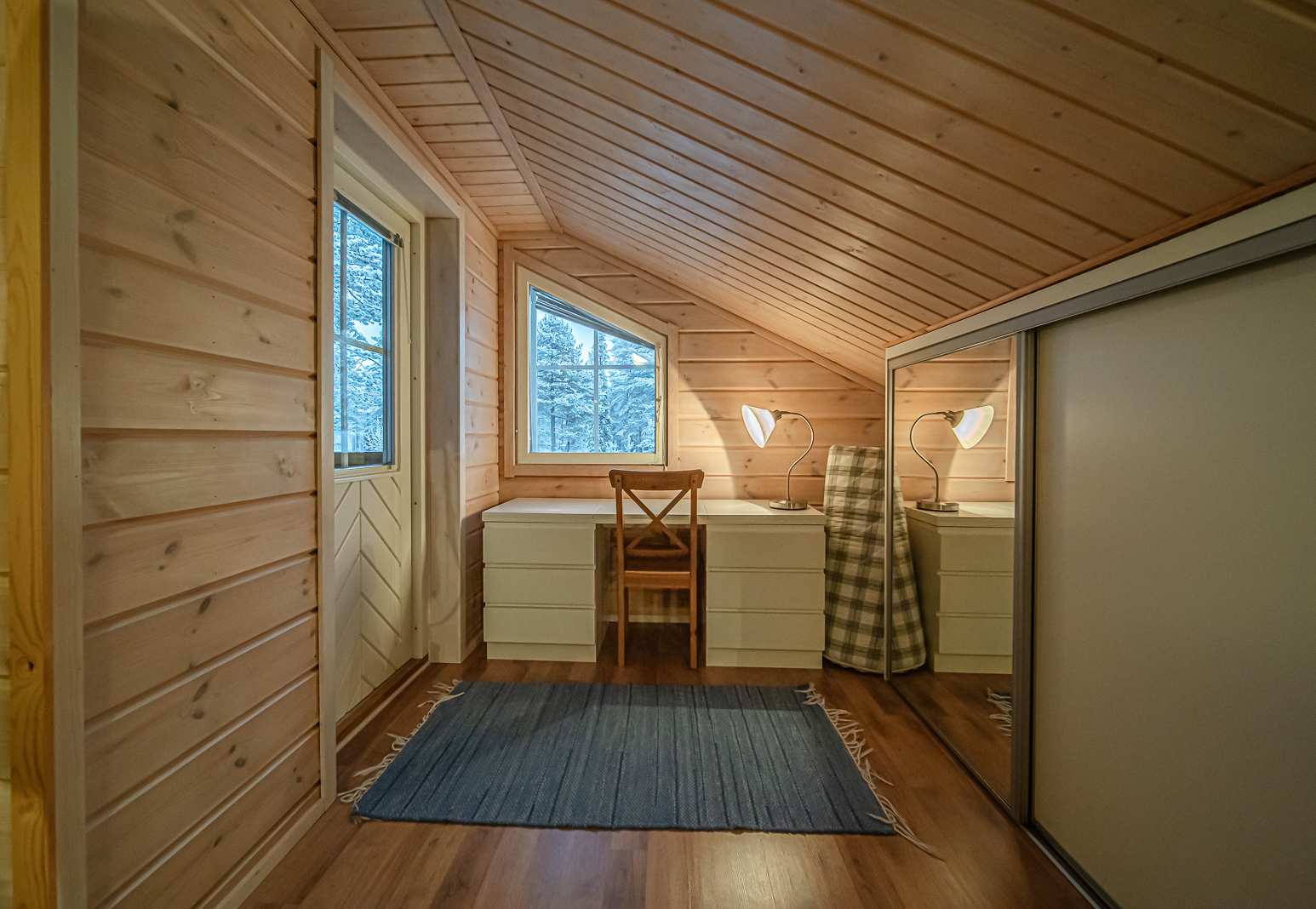 | Makuuhuone | Seinät: puu Lattia: laminaatti |