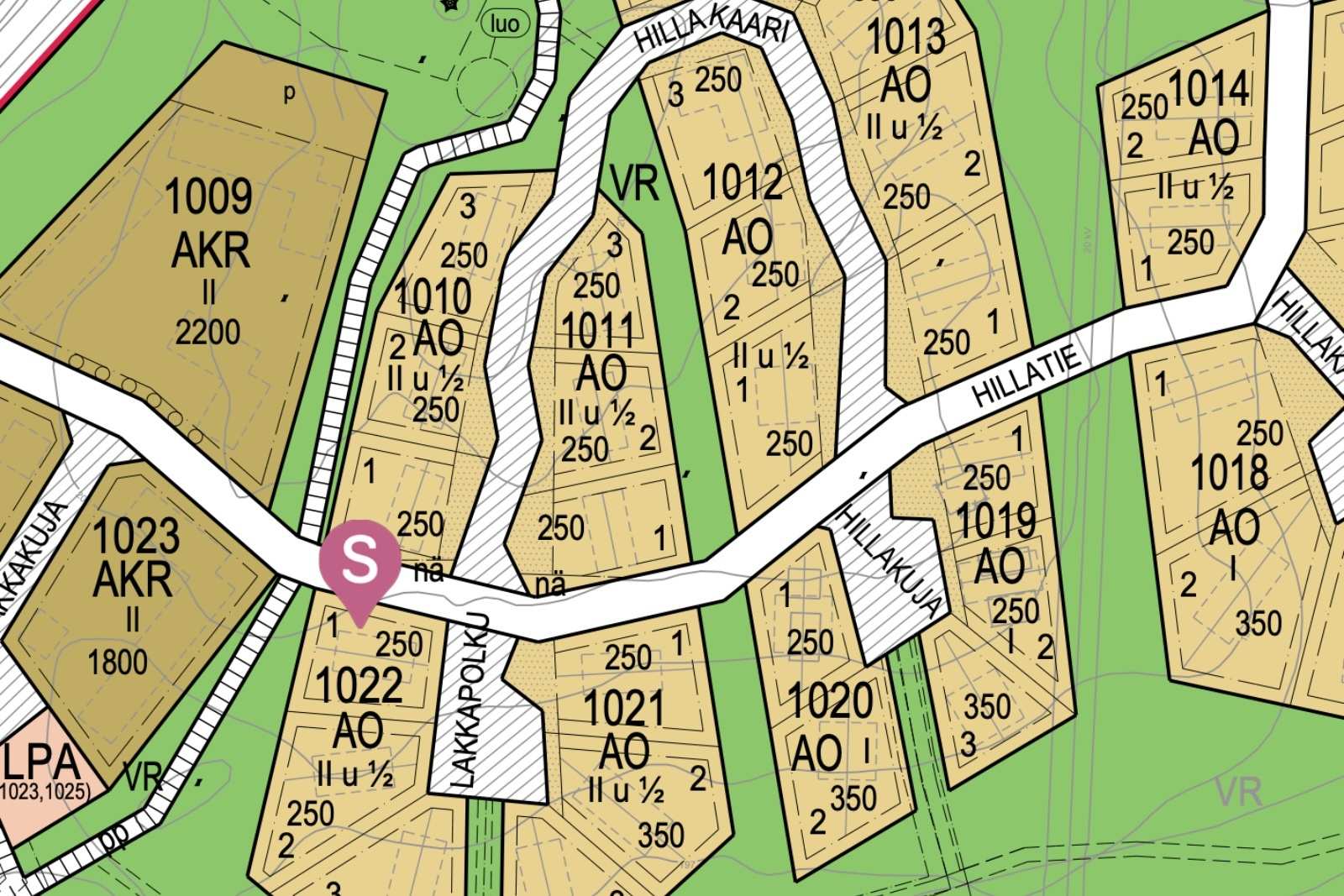 | Lisätietoja kaavoituksesta | AO Erillispientalojen korttelialue. Tontille saa rakentaa korkeintaan kaksi asuntoa. |