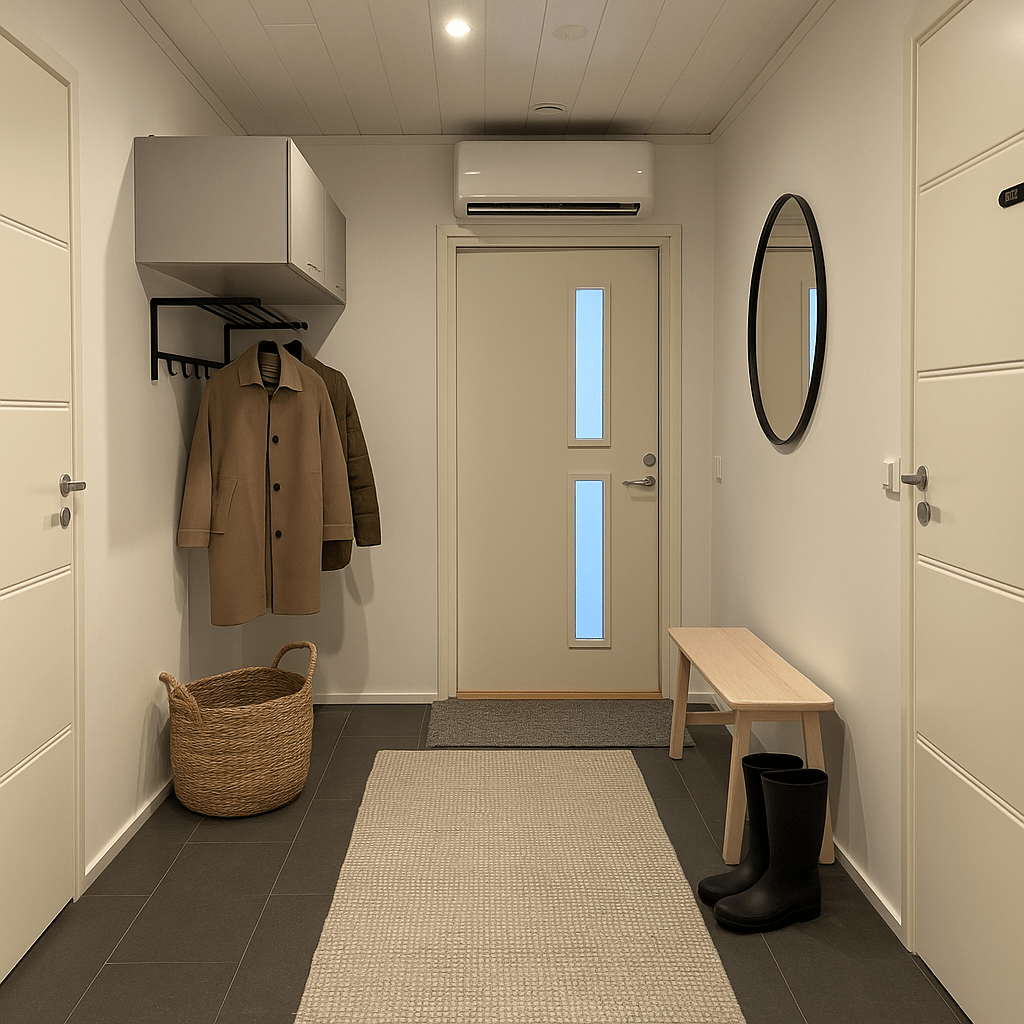 | Olohuone | Seinät: maalattu, puu Lattia: vinyyli |