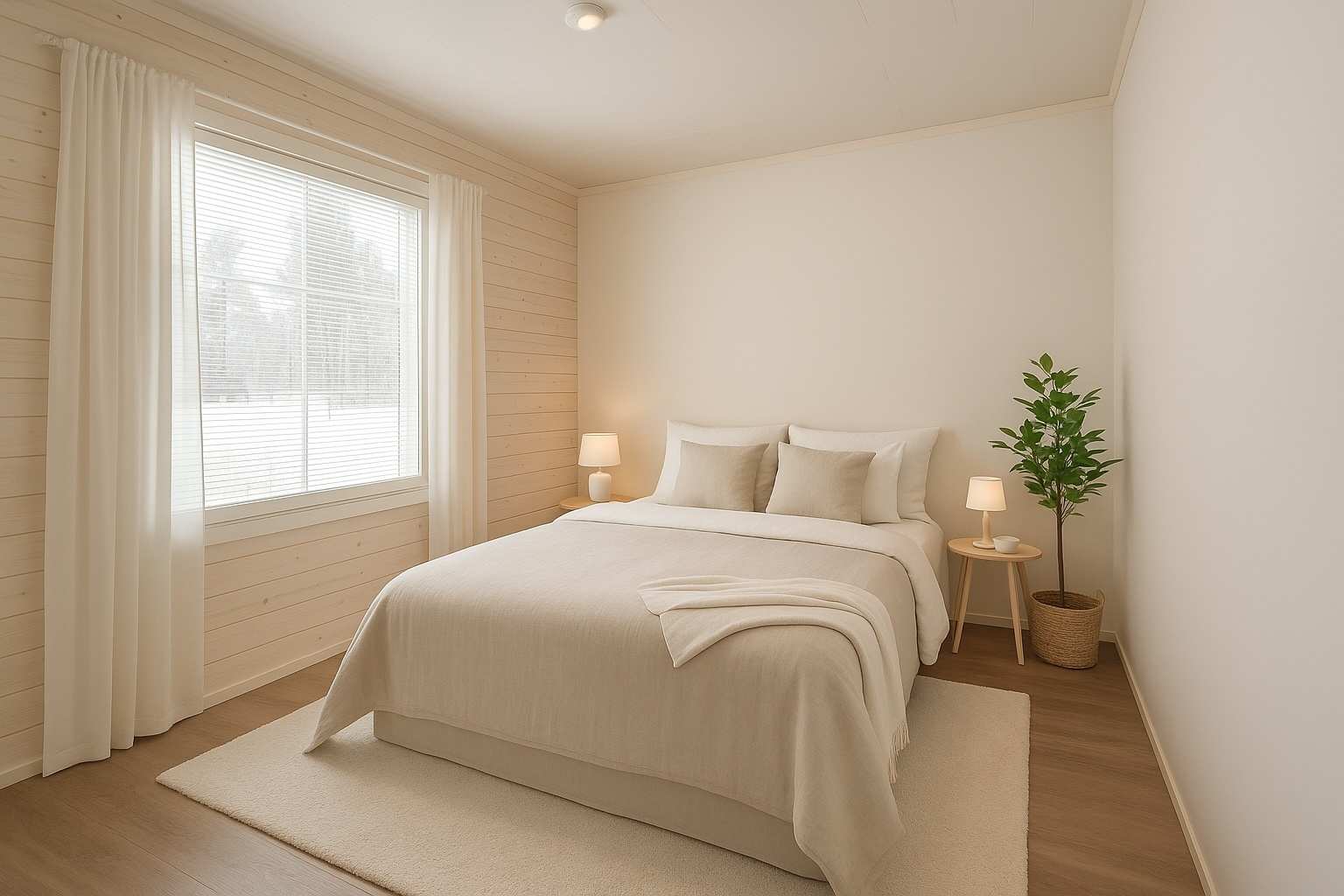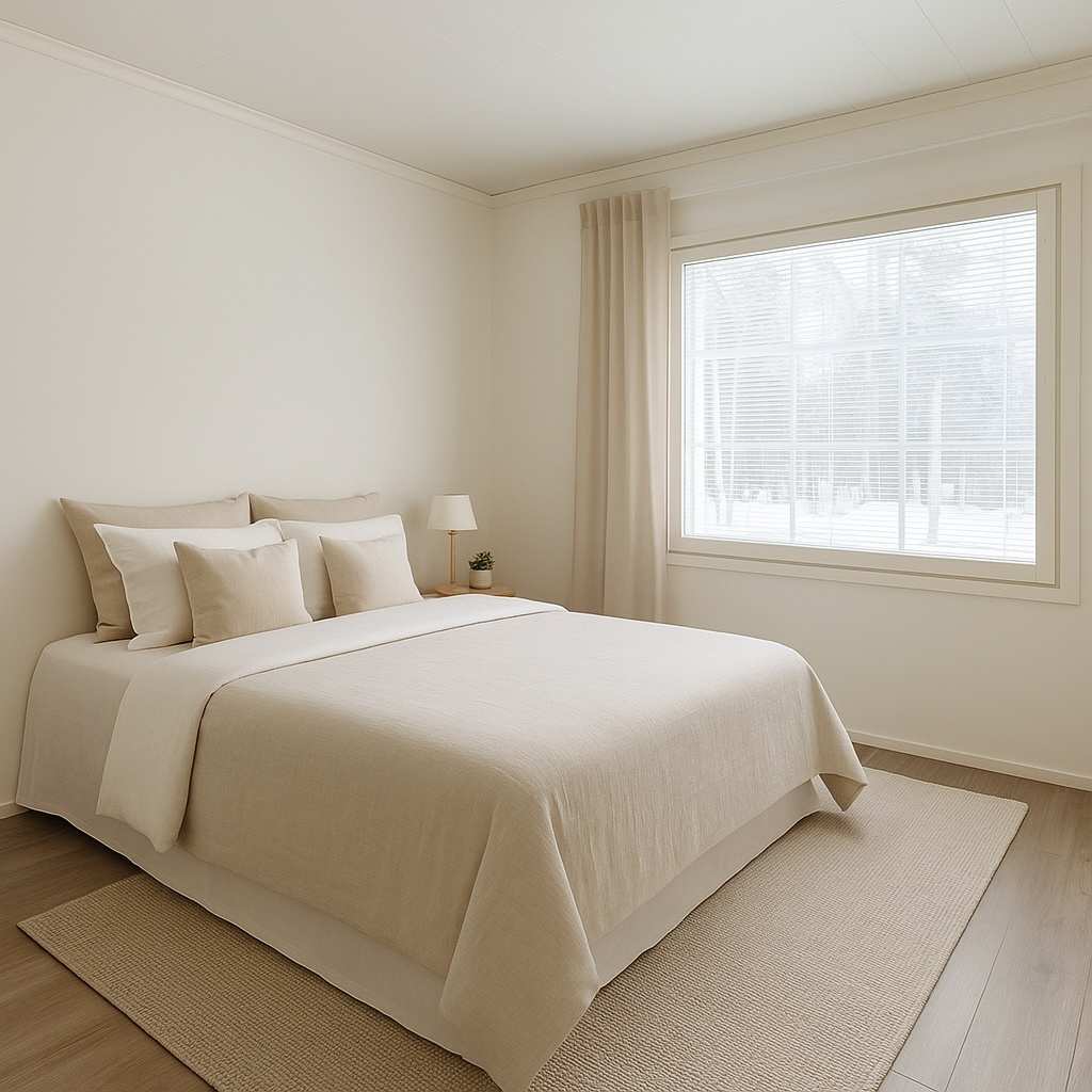 | Makuuhuone | Seinät: maalattu Lattia: vinyyli |