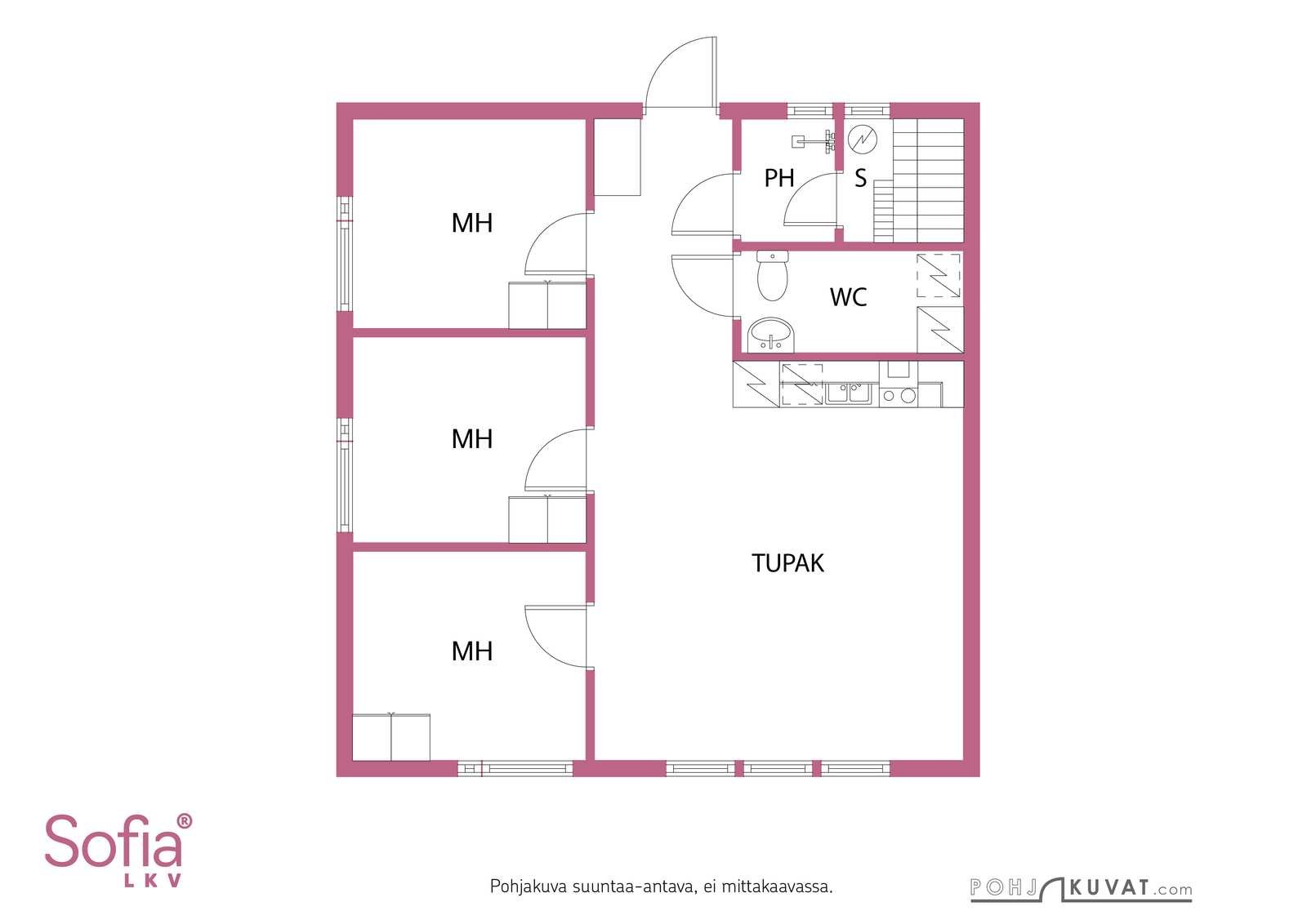 tupakeittiö + 3mh + saunaos. + wc