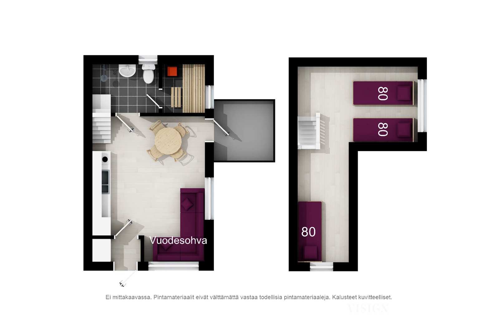 Vuokralainen huolehtii omalla kustannuksellaan vedestä, sähköstä, wifistä, omasta irtaimistovakuutuksesta.