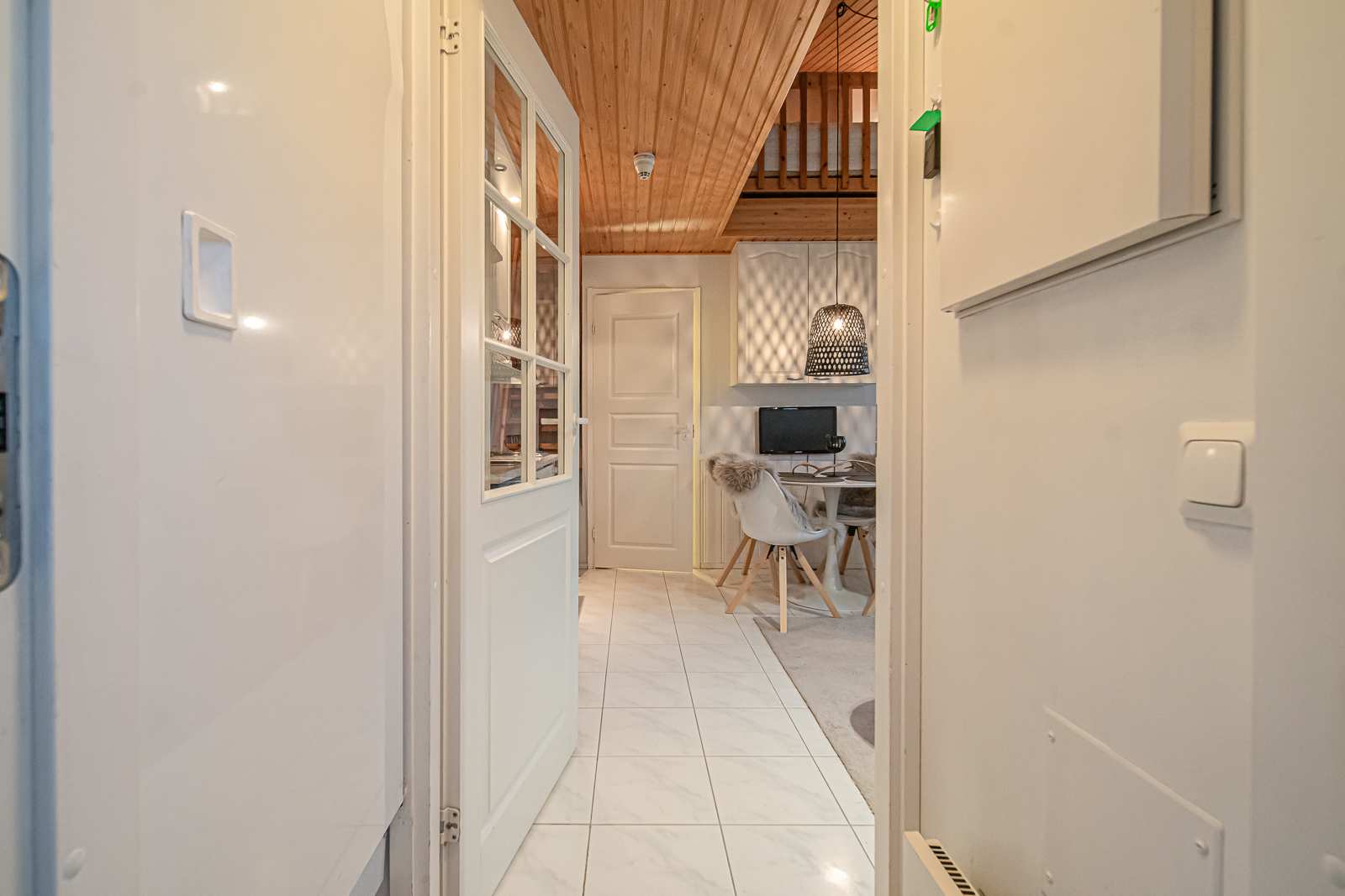 | Keittiön varustus | Jääkaappi ja pakastin: jääkaappi/pakastin Muut varusteet: mikroaaltouuni, astianpesukone, liesituuletin / hormi Tasot: laminaatti Seinät: kaakeli, maalattu, tapetti Lattia: laatta Liesi/uuni: liesitaso |