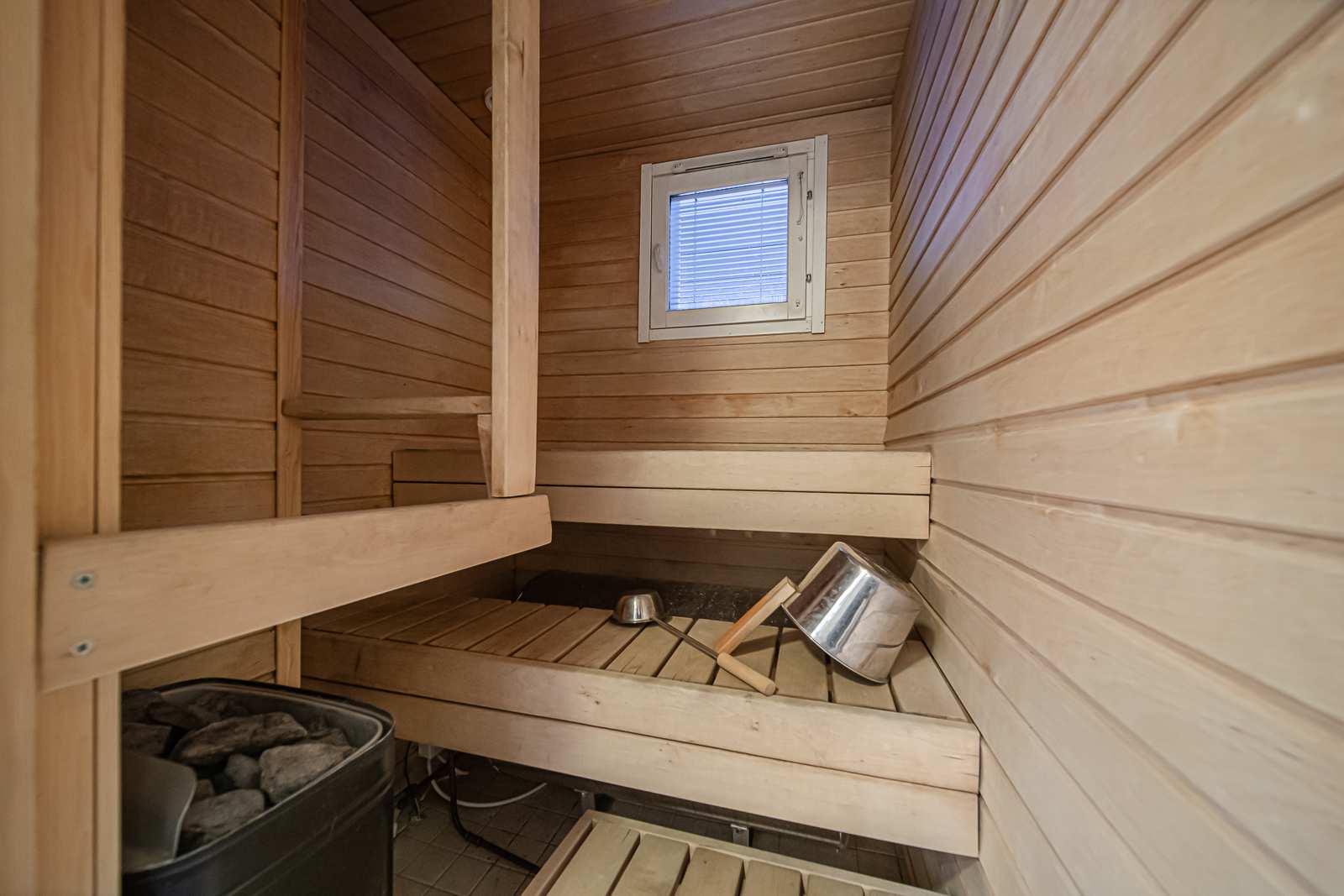 | Saunan pinnat | Seinät: puu Lattia: laatta |
