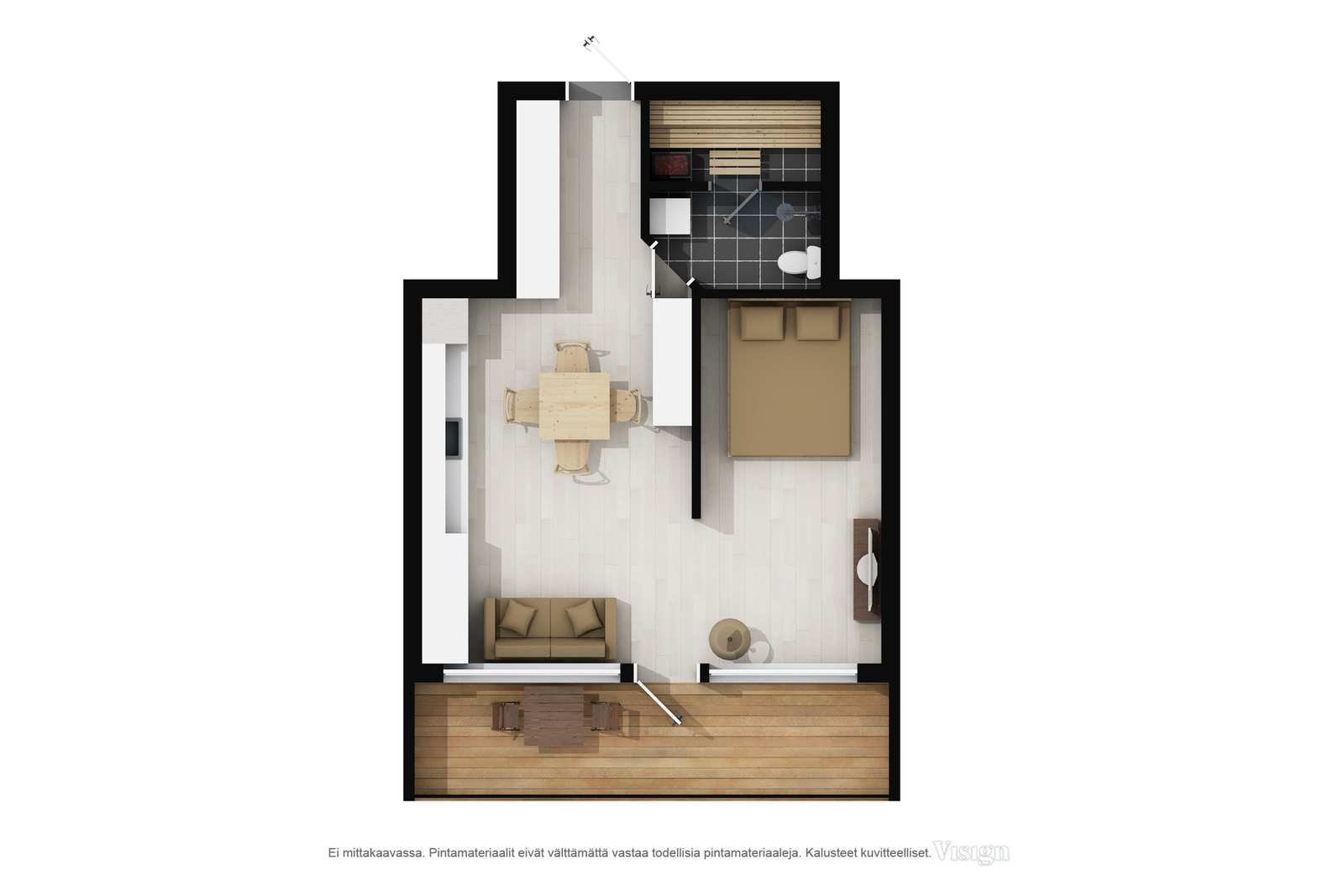 Alppitalohuoneisto, omalla saunalla.