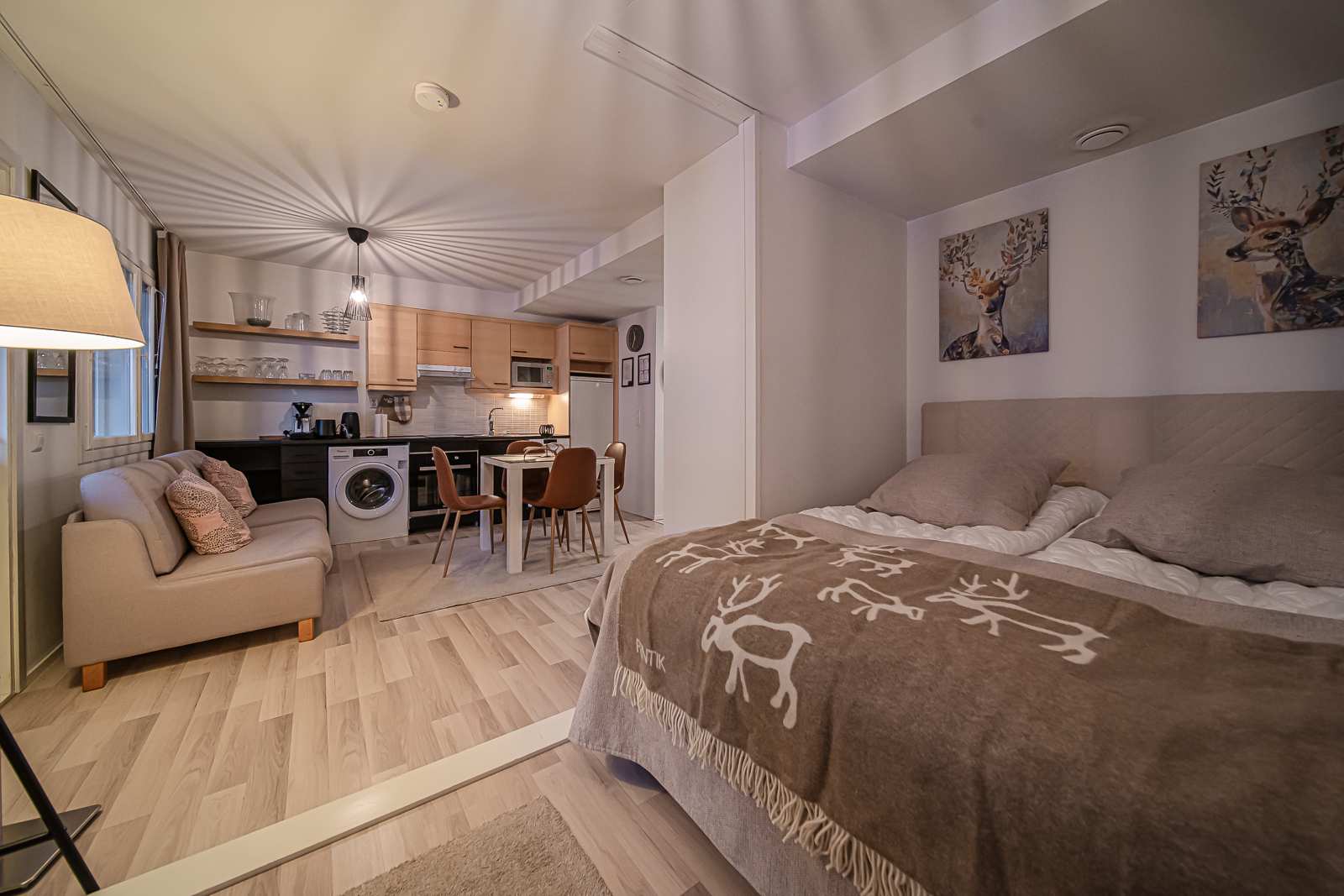 Viihtyisä alppitalohuoneisto Levin keskustassa, varustelu valmiiksi. Sopii vuokra-asunnoksi yhdelle hengelle tai pariskunnalle.