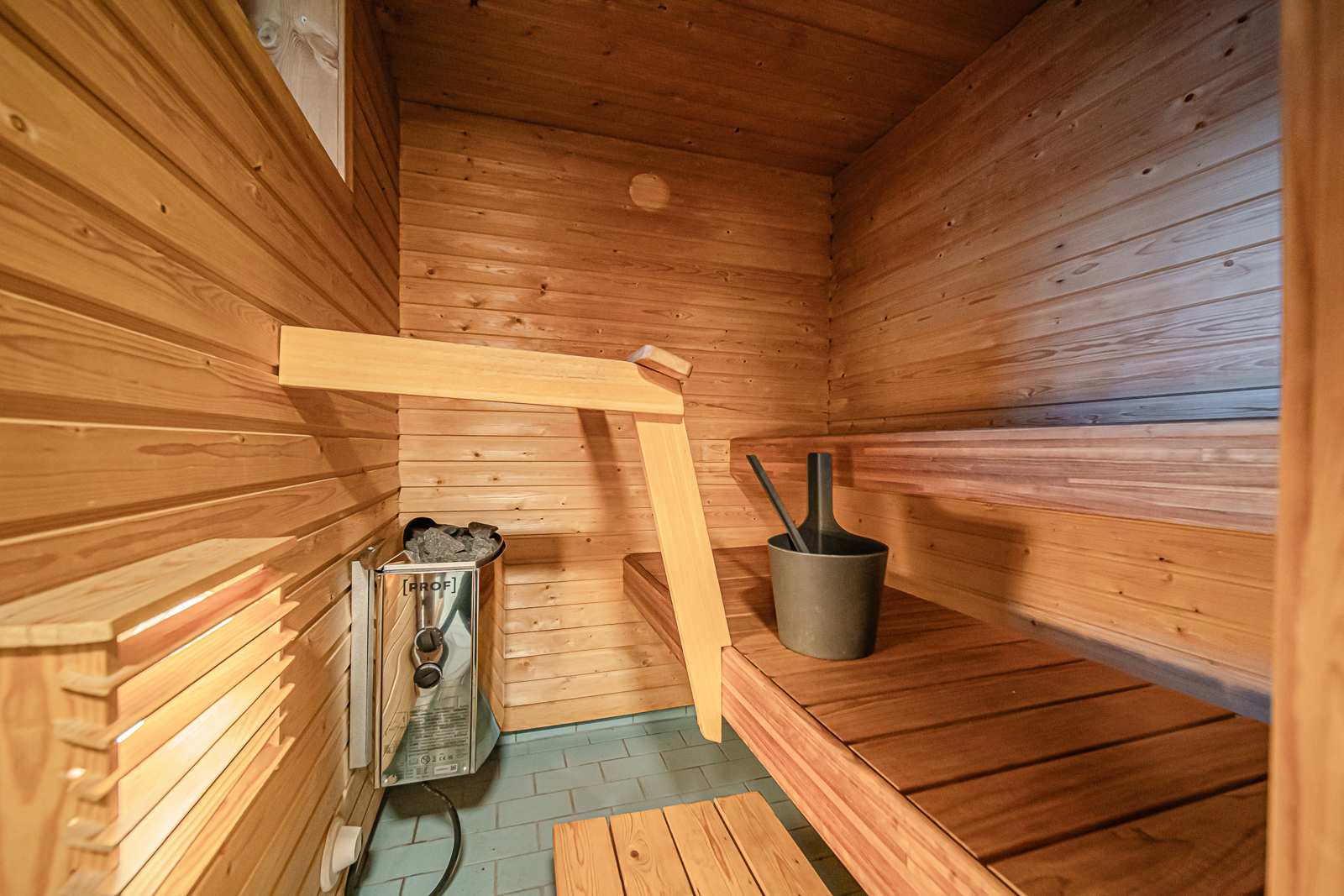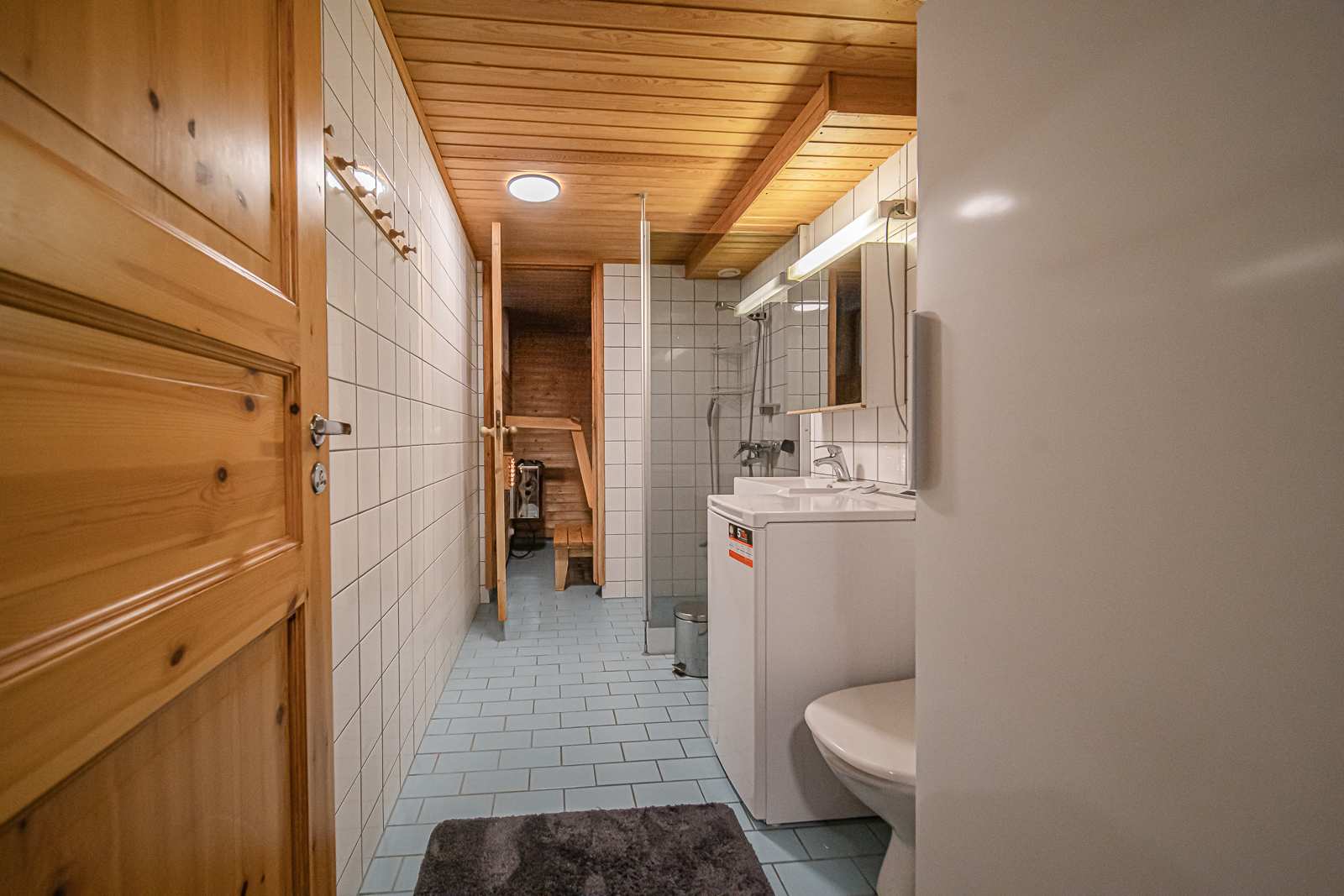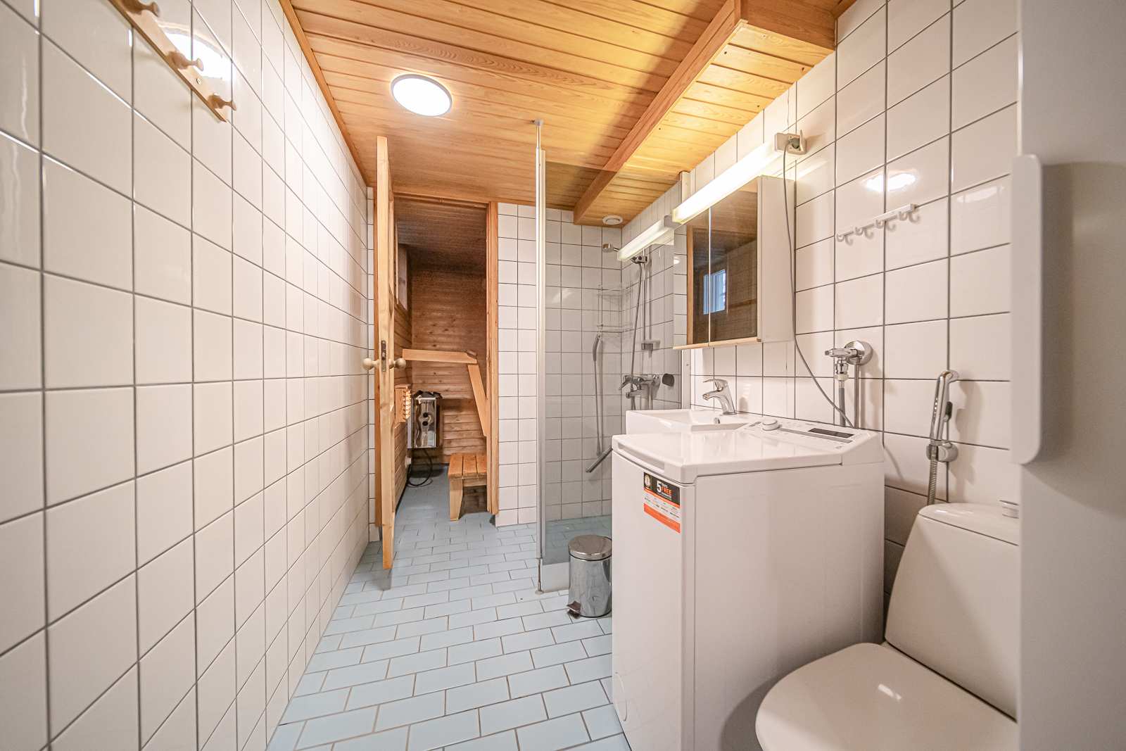 | Saunan pinnat | Seinät: puu Lattia: laatta |